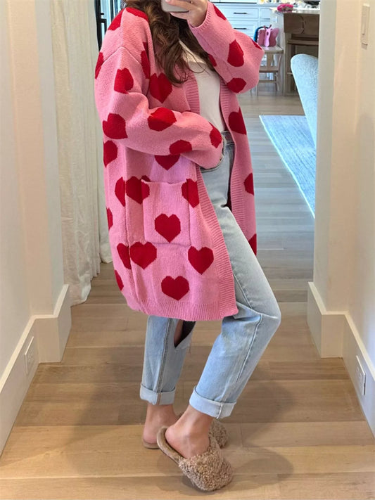 Heart Pattern Open Front Cardigan