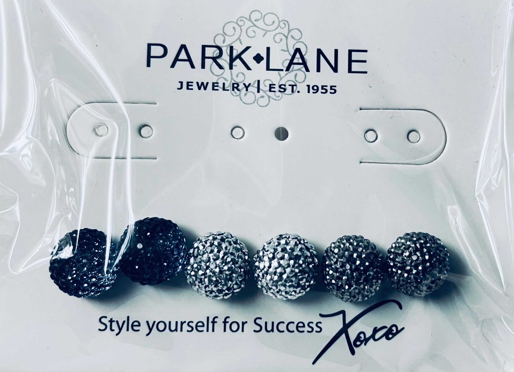 This trio of pavé ball earrings comes in a navy, diamond tone, and copper tone. 3 pairs!